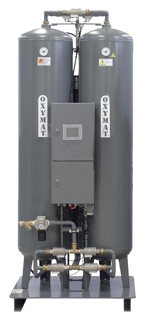 Адсорбционный генератор азота Oxymat N280 работает по технологии PSA: кислород и примеси задерживаются в адсорбционных колоннах, а азот с нужной чистотой направляется в выходной контур.