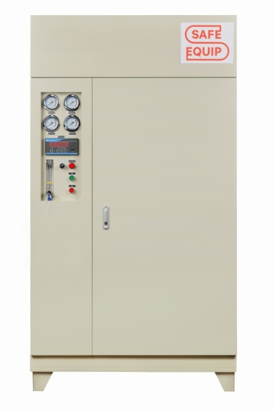 Адсорбционный генератор азота Safe Equip GN-15 работает по технологии PSA: кислород и примеси задерживаются в адсорбционных колоннах, а азот с нужной чистотой направляется в выходной контур.